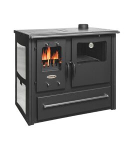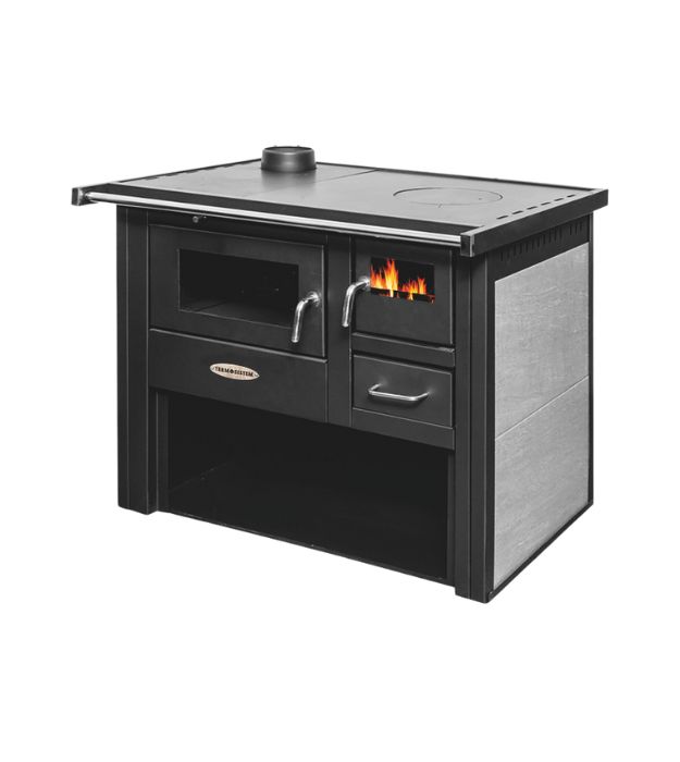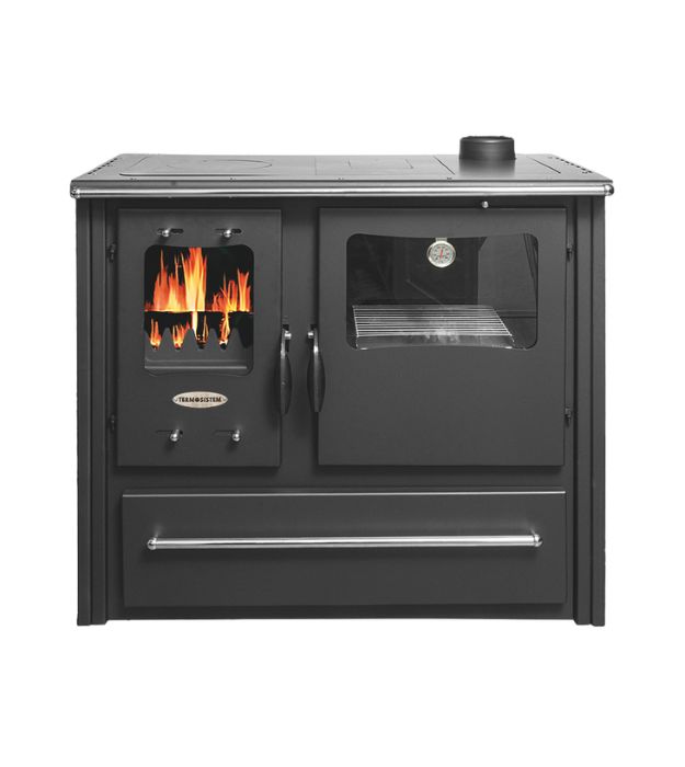 Termo 100 je snažna peć na drva sa velikom rernom za kuvanje, idealna za grejanje i pripremu hrane u jednom uređaju. Kombinuje funkcionalnost tradicionalne šporetske peći sa modernim karakteristikama i dizajnom. Opremljena je livenom rešetkom, velikim prostorom za loženje, keramičnim bočnim panelima i fiokom za drva.